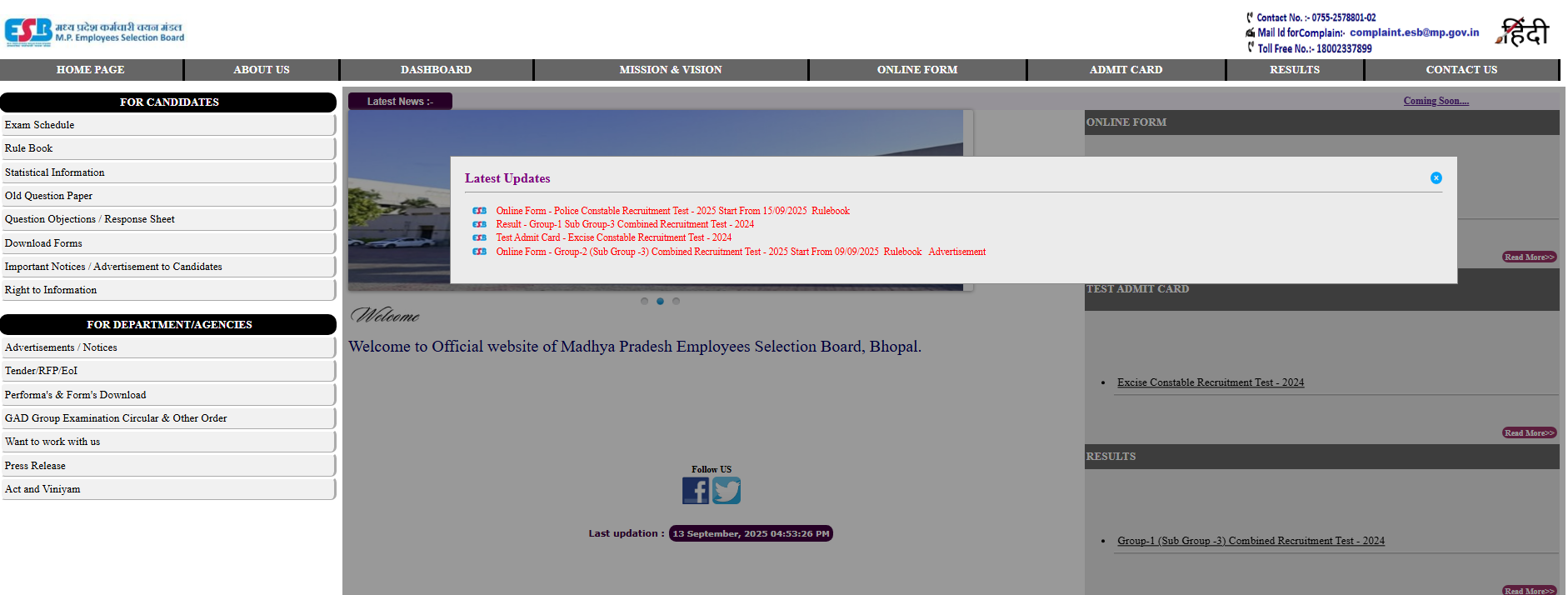 - MP Police भर्ती 2025 में भाग लेने के लिए सबसे पहले आधिकारिक वेबसाइट esb.mp.gov.in पर जाएं।